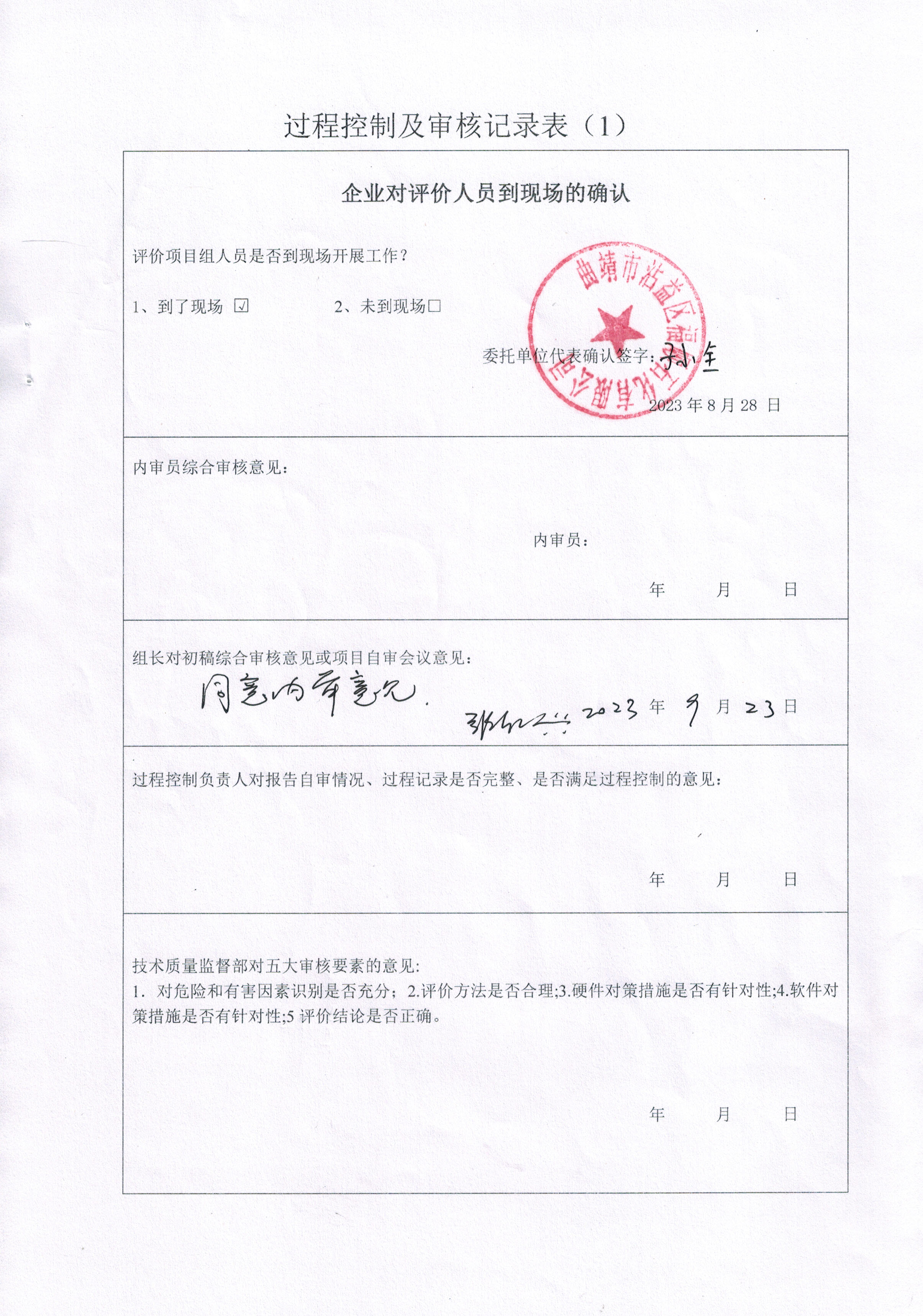 技術負責人審核 | 內審意見(√ 通過 口 不通過 ) √是 口 否 | |||||||