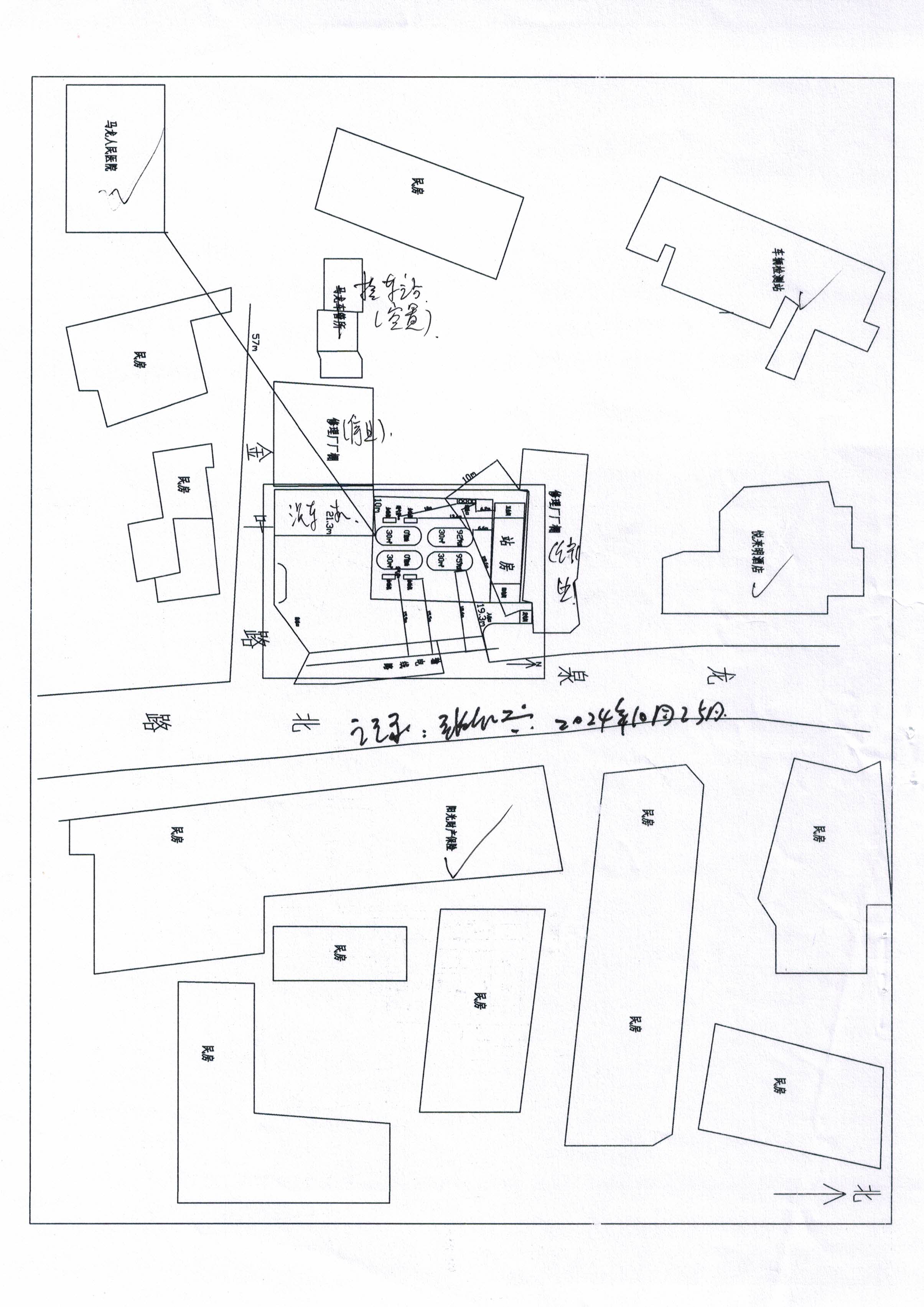 現場勘查情況 | 無人機航拍加油站及周邊平面照片,查看加油站周邊環境,查看加油區、油罐區、液位計、配電室現場情況,查看安全管理資料。 | |||||||