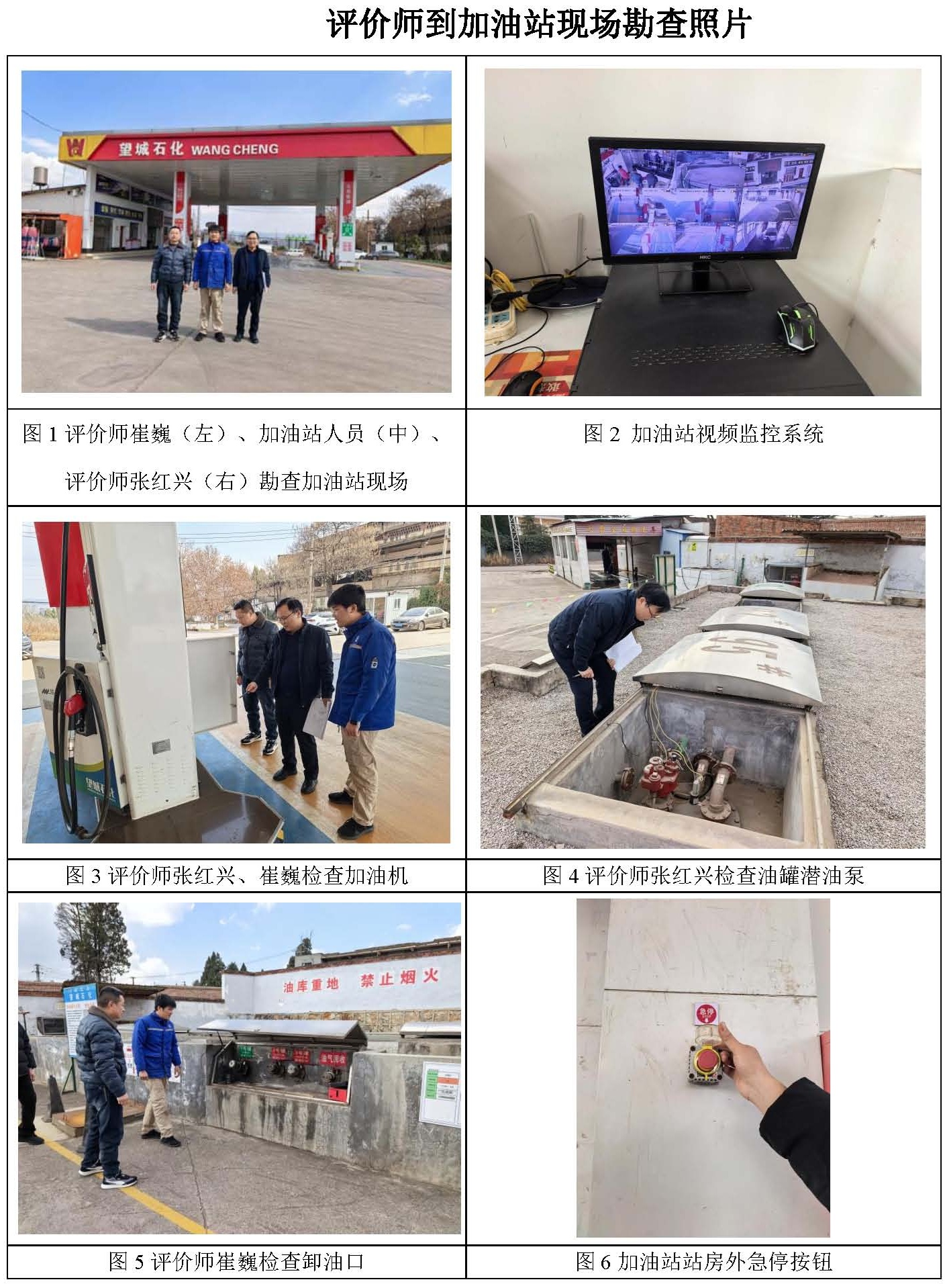 現場勘查情況 拍加油站及周邊平面照片,查看加油站周邊環境,查看加油區、油罐區、液位計、配電室現場情況,查看安全管理資料。