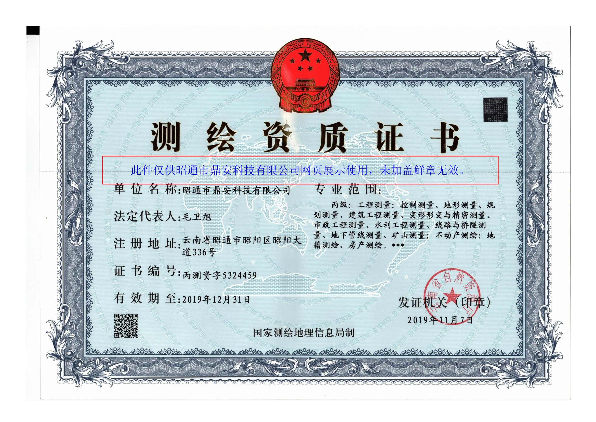 昭通市鼎安科技有限公司測繪資質